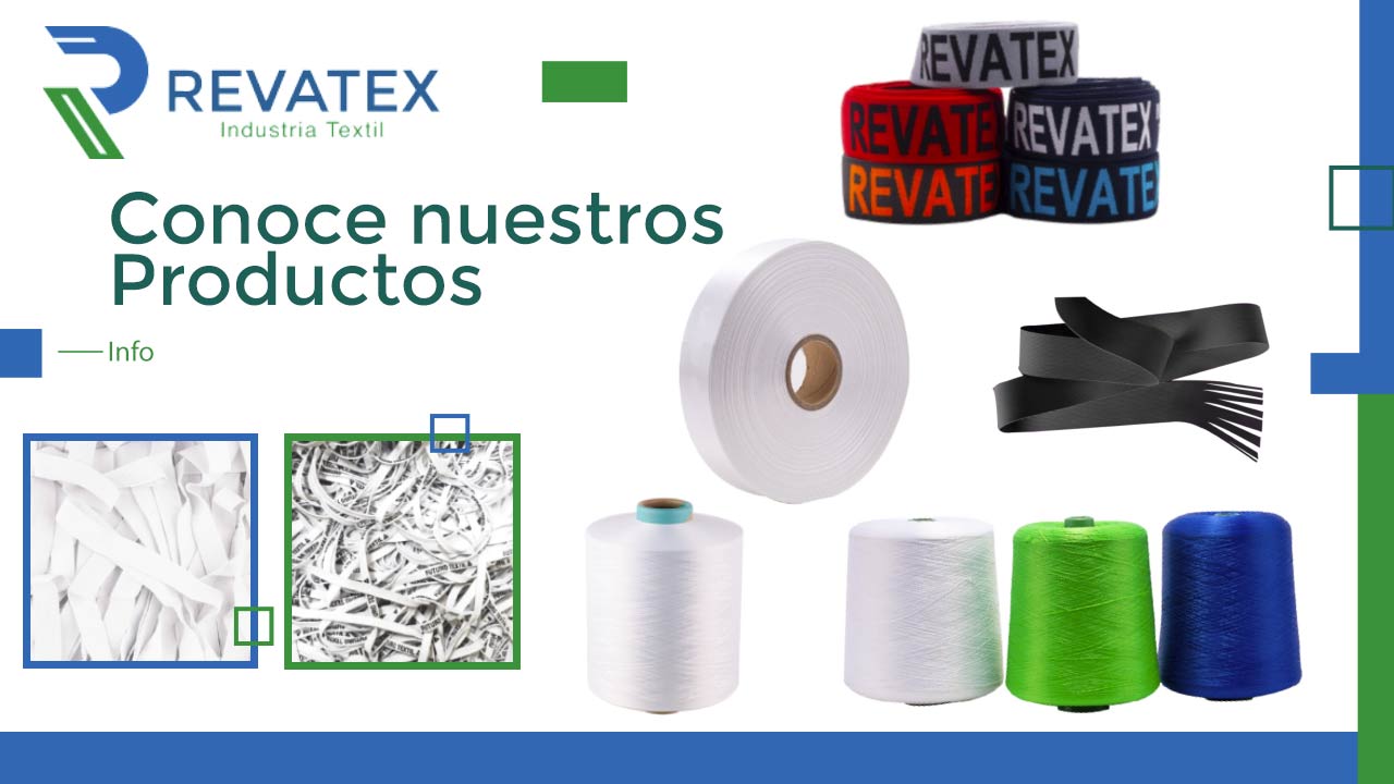 REVATEX es una empresa dedicada a la fabricación y comercialización de insumos textiles de excelente calidad como cintas elásticas con diseño, cintas elásticas llanas, etiquetas, hilos, entre otros. Los mismos que cuentan con gran versatilidad de diseños, combinación de colores y texturas para la confección de ropa deportiva, ropa casual, trajes de seguridad, mascarillas, prendas íntimas masculinas y femeninas, confección en general.